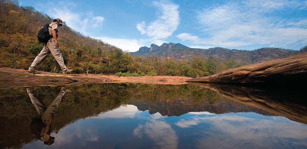 The safari starts at Pachmarhi and retraces the trail taken by Captain J. Forsyth of the Bengal Lancers 150 years ago. There is no electricity at the campsites of Daheliya and Manakachar, and accommodation is in tents furnished with twin cots, blankets and pillows. The camp staff provides wonderful service, while the cooks turn out delicious meals. A team of experienced naturalists accompanies all safaris. Minimum of two people required.