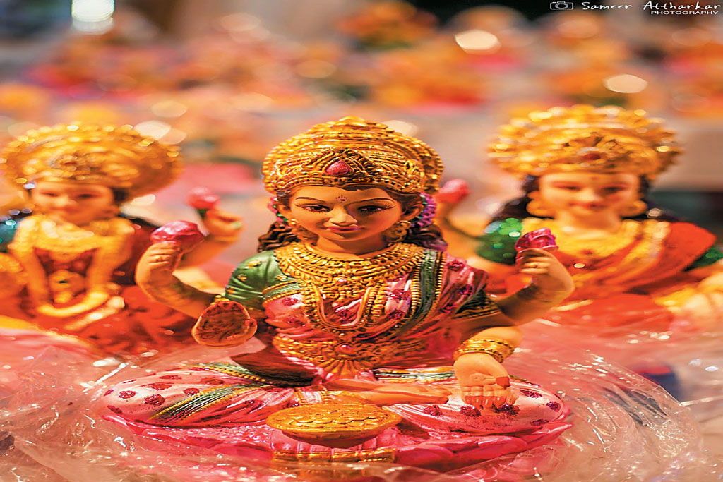 The day of Diwali is primarily known for Lakshmi puja. As revellers step out adorned in the best of clothing for the evening, diyas are lit and prayers are offered to Lakhsmi, along with other deities depending on what region you come from. Normally, Ganesha, Saraswati and Kubera are also offered prayers along with Lakshmi, all harbingers of wealth, knowledge and prosperity. Doors are kept ajar for the symbolic significance of Lakshmi entering the house. Fireworks are an important element in this dynamic festival. Usually, days before the occasion, local shops stock up on different kinds of fireworks. Crackers such as ground chakras, Vishnu chakras, anaars, sutli bombs, rockets and bigger fireworks are very common.