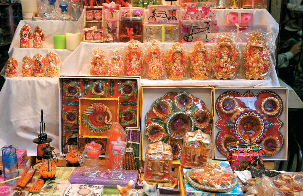 The first day in the run up to Diwali is Dhanteras, marking the birth of Lakshmi, the goddess of wealth and prosperity, as well as the birth of Dhanvantari, the god of health and healing. This occasion ushers in a cleaning spree at home – houses and premises are cleaned, renovated and decorated. Family members get together to make rangolis at their front doors or verandahs and set up the lighting arrangements that go hand-in-hand with modern-day Diwali. It is also a day of shopping for gold and silver items. Shops stock up well in advance for this festival.