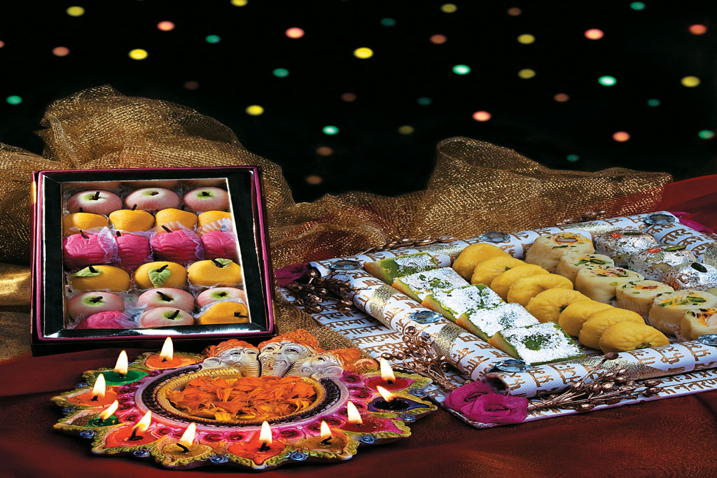This is followed by the bursting of crackers and lighting of phooljharis (sparklers), after which the family or community feasts on traditional Indian sweets.