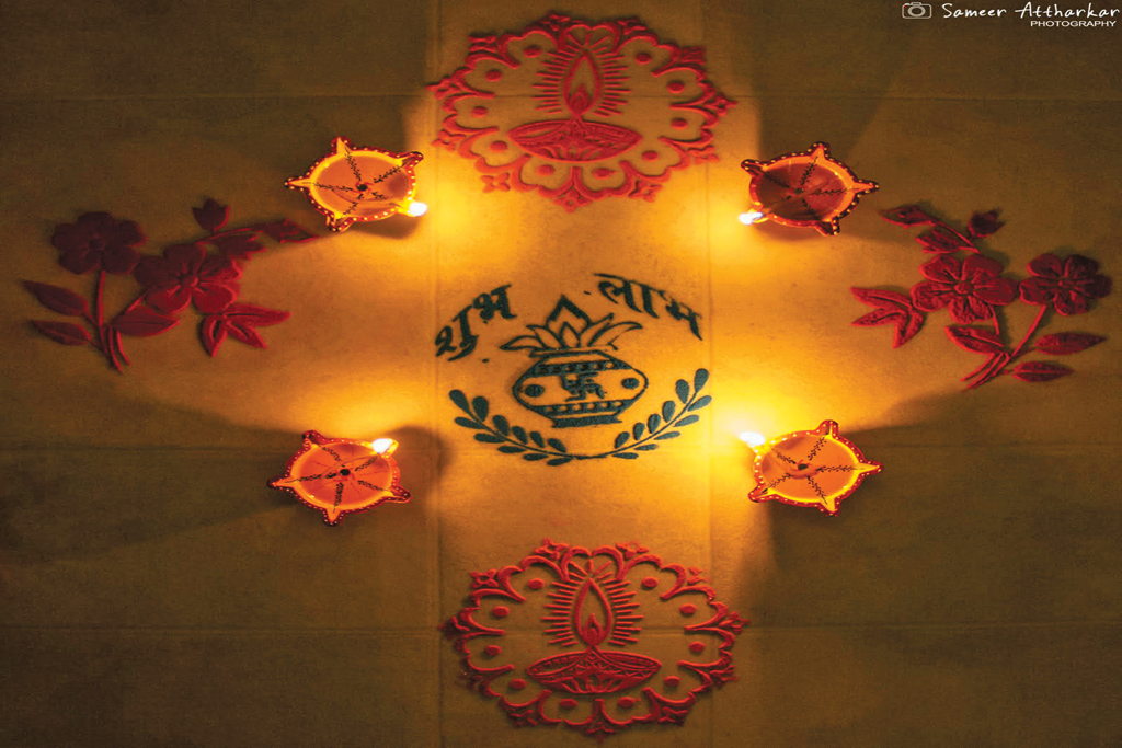 A few days before Diwali, a typical Indian household undergoes a thorough cleaning spree, an act that comprises not only cleaning, but also the sprucing up and decorating of homes and offices. The five-day festival begins on the day Lakshmi, the goddess of prosperity and fertility, was supposedly born from the churning of the cosmic ocean by the gods and demons, as described in the creationist myth of samudra manthan. On the day of Diwali, revellers wear new or their best clothes, light diyas and candles (hence the name ‘festival of lights’), create rangolis with coloured powders and flowers on the floor and pray to Lakshmi. People leave their doors and windows open, and light lamps to “invite” her in. This ritual comes from the belief that Laxmi wanders the earth on this night and seeks a home where she feels welcomed.